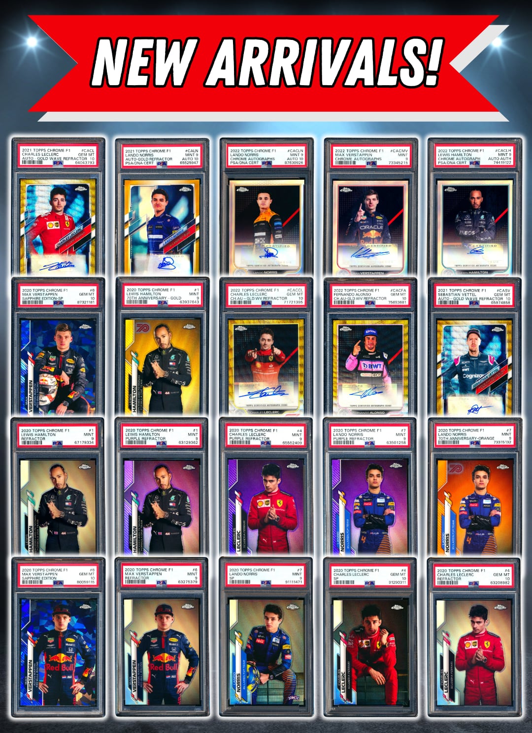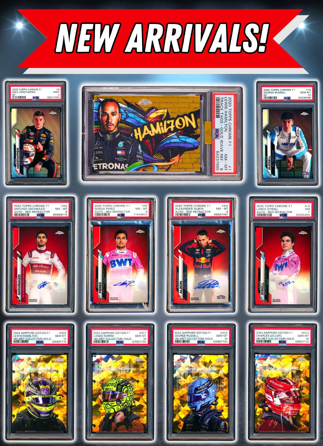 This past September, over a 3-Day period, we ran a special Formula One focused auction on eBay. With 1,206 Auctions it was the largest F1 trading card auction to date. We’ve long been fans of the 2020 F1 sets and felt it was the perfect opportunity to showcase them to the broader sports card collecting community, as well as provide longtime F1 fans with some rare and unique cards. Always with an eye for the long run, having every card PSA Graded was a must for this inaugural auction.