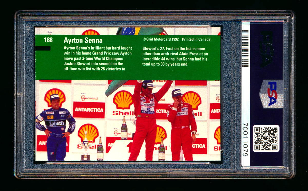 1992 Grid F1 #188 Ayrton Senna PSA 9 ** (SOLD eBay - $35.00 - 4/20/2025) **