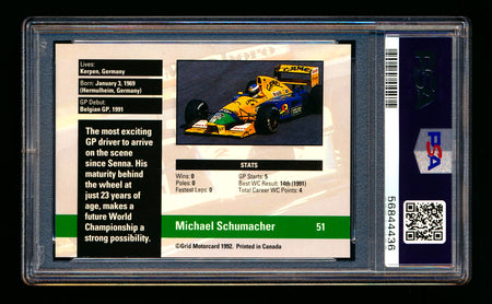 1992 Grid F1 #51 Michael Schumacher RC Rookie PSA 10
