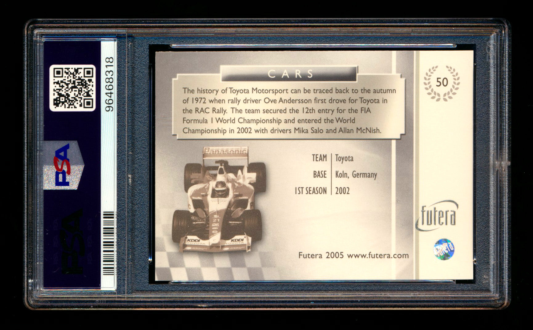 2005 Futera Grand Prix F1 #50 Panasonic Toyota Racing Cars PSA 10 - POP 1! ** (SOLD Fanatics Fest - $115.00 - 6/21/2025) **