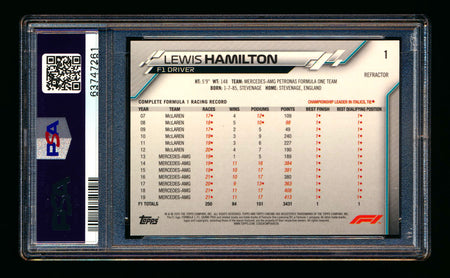 2020 Topps Chrome F1 #1 Lewis Hamilton RC Refractor Portrait PSA 10