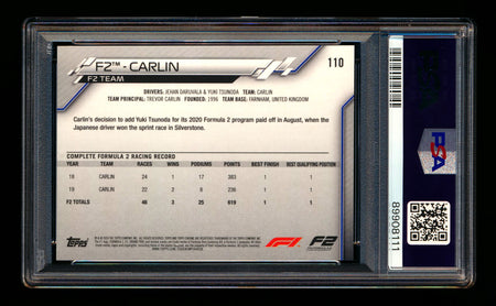 2020 Topps Chrome F1 #110 Carlin RC 70th Anniversary Gold Refractor PSA 8 ** (SOLD - $20.00 - 9/27/2025) **