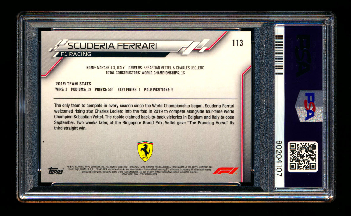 2020 Topps Chrome F1 #113 Scuderia Ferrari Team Logo RC 70th Anniversary Gold Refractor PSA 8