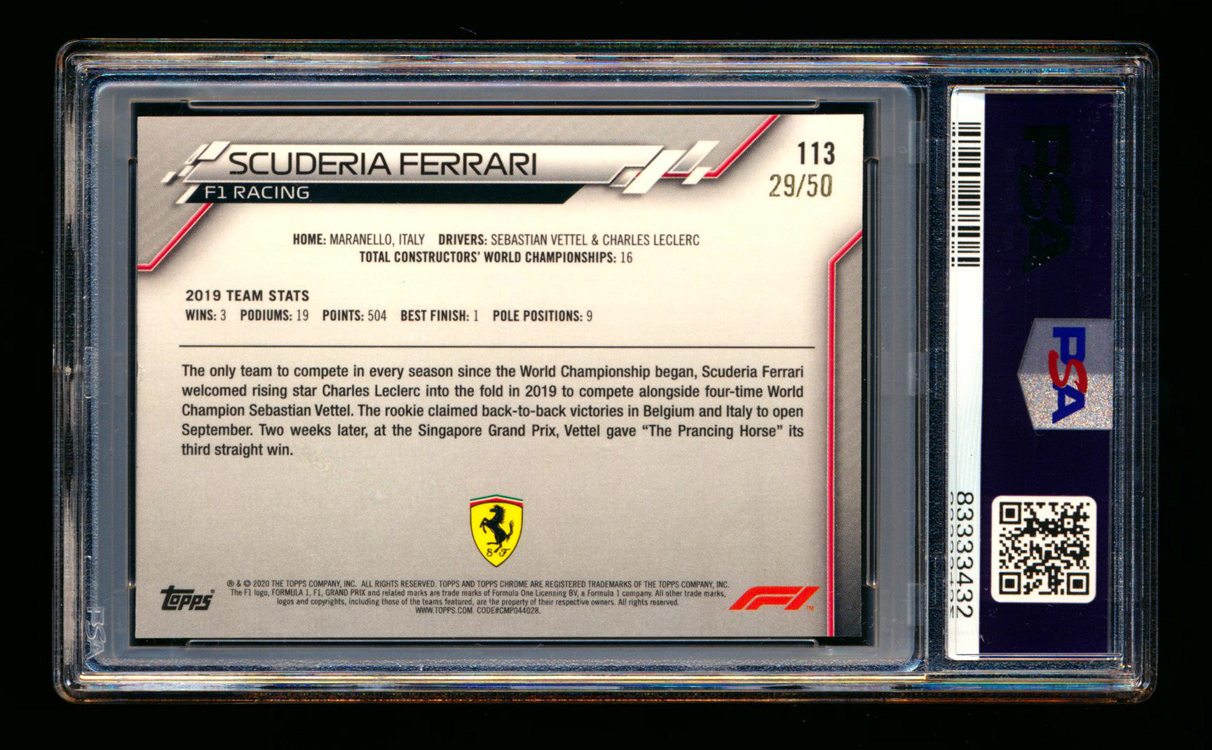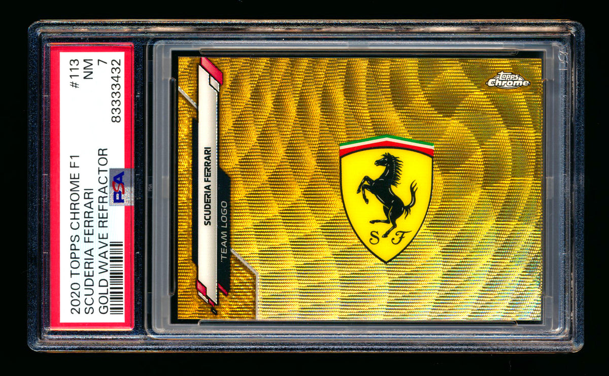 2020 Topps Chrome F1 #113 Scuderia Ferrari Team Logo RC Gold Wave Refractor #29/50 PSA 7