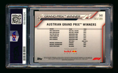 Description: Already the winningest driver in the history of the Austrian Grand Prix with 4 Victories, Max Verstappen's 2nd Win there in 2019 was special. Not only did it mark the first win by a Honda powered F1 car since 2006 but it would also be immortalized with this - the first Austrian Grand Prix Topps trading ever made.