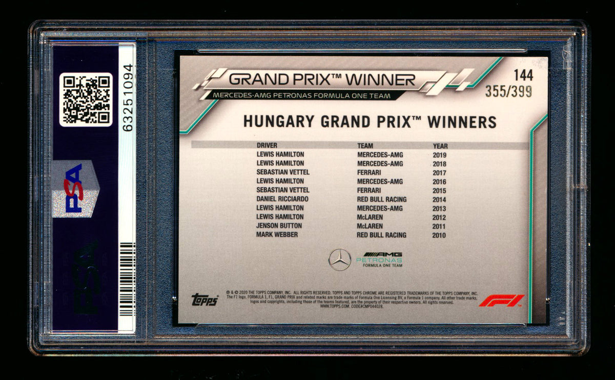 2020 Topps Chrome F1 #144 Lewis Hamilton RC Purple Refractor #355/399 PSA 10 ** (SOLD Nationals - $200.00 - 8/3/2025) **