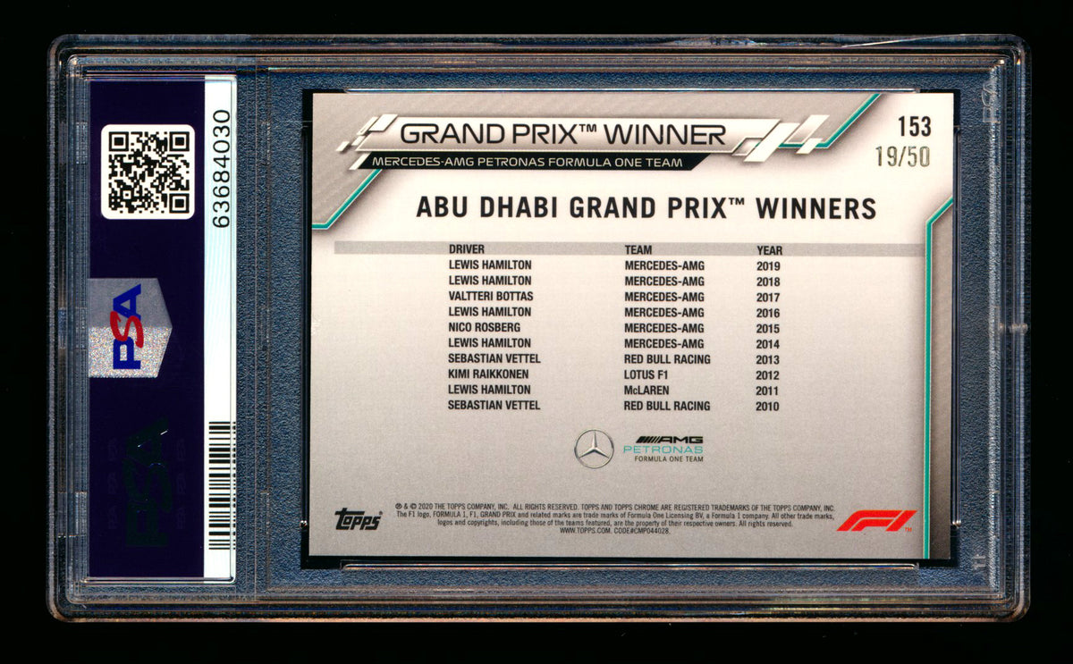 2020 Topps Chrome F1 #153 Lewis Hamilton RC Gold Wave Refractor #19/50 PSA 7