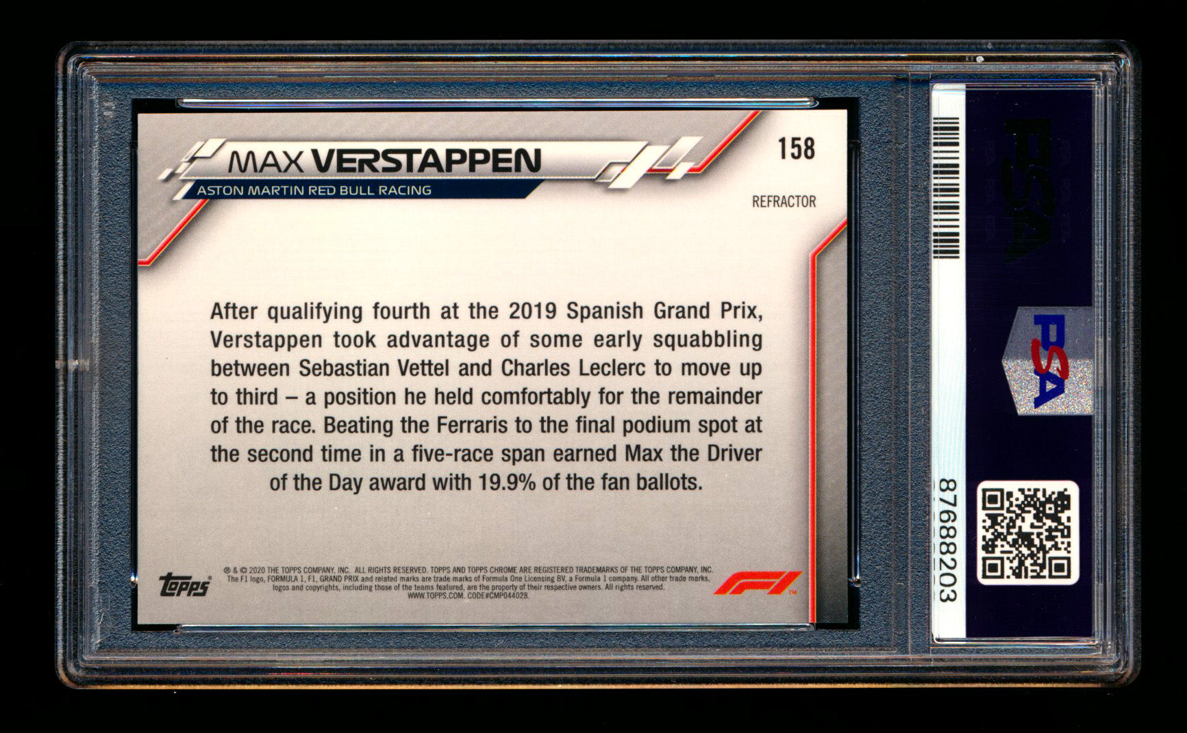 2020 Topps Chrome F1 #158 Max Verstappen RC Refractor PSA 9