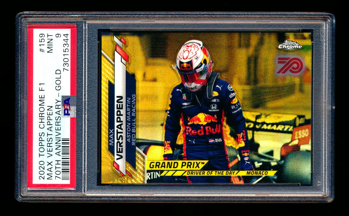 2020 Topps Chrome F1 #159 Max Verstappen RC 70th Anniversary Gold Refractor PSA 9