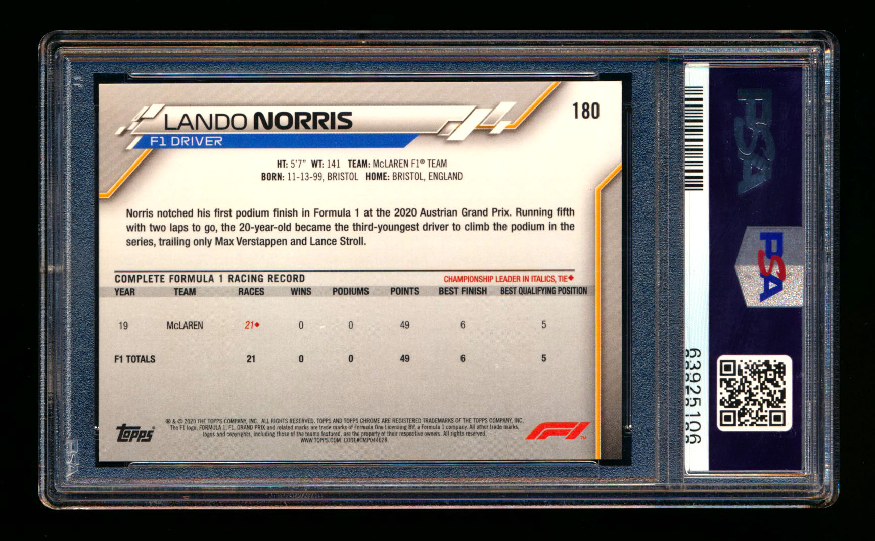 2020 Topps Chrome F1 #180 Lando Norris RC 70th Anniversary Red Refractor PSA 9 ** (SOLD eBay - $1,000.00 - 7/29/2025) **