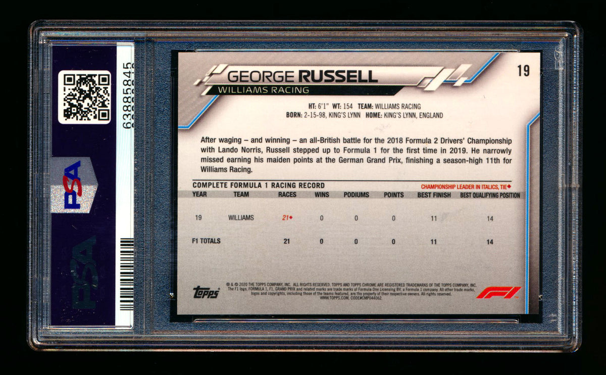 2020 Topps Chrome F1 #19 George Russell RC Refractor Image Variation SP PSA 10 ** (SOLD eBay - $950.00 - 9/22/2025) **