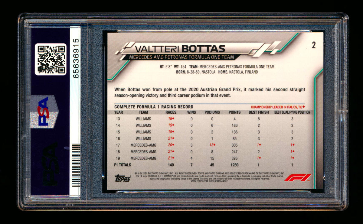 2020 Topps Chrome F1 #2 Valtteri Bottas RC Refractor Image Variation SP PSA 10