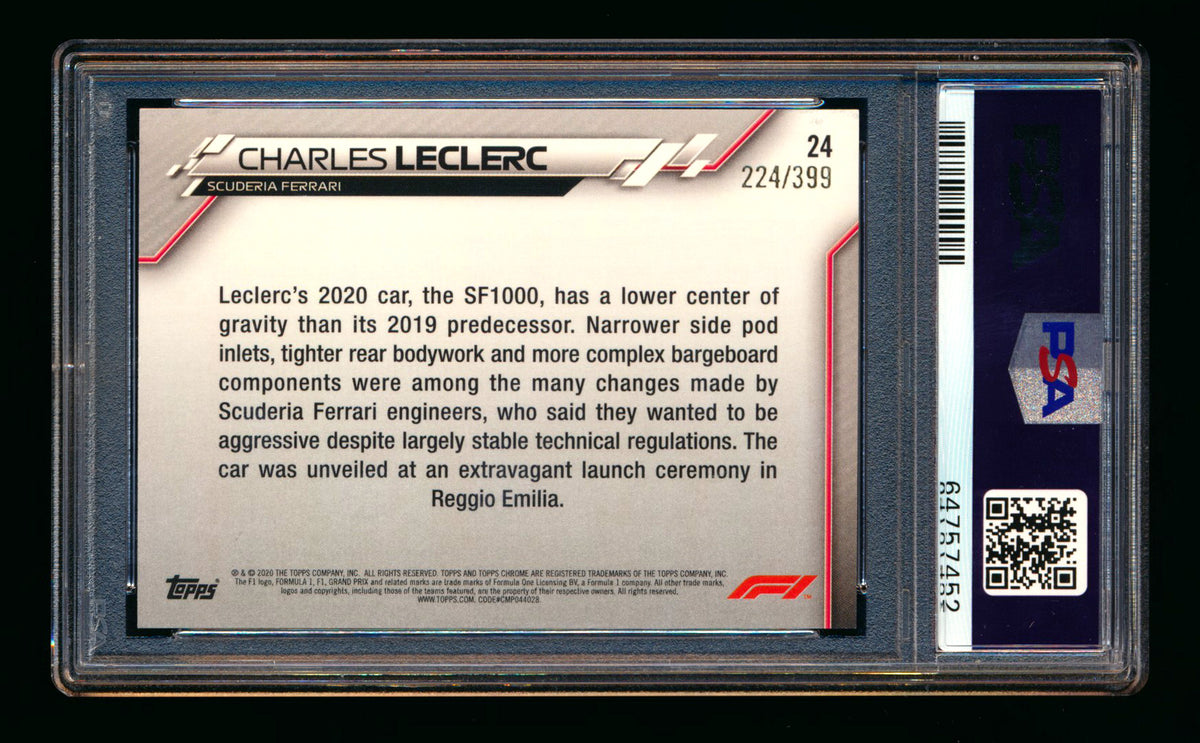 2020 Topps Chrome F1 #24 Charles Leclerc RC Purple Refractor #224/399 PSA 9