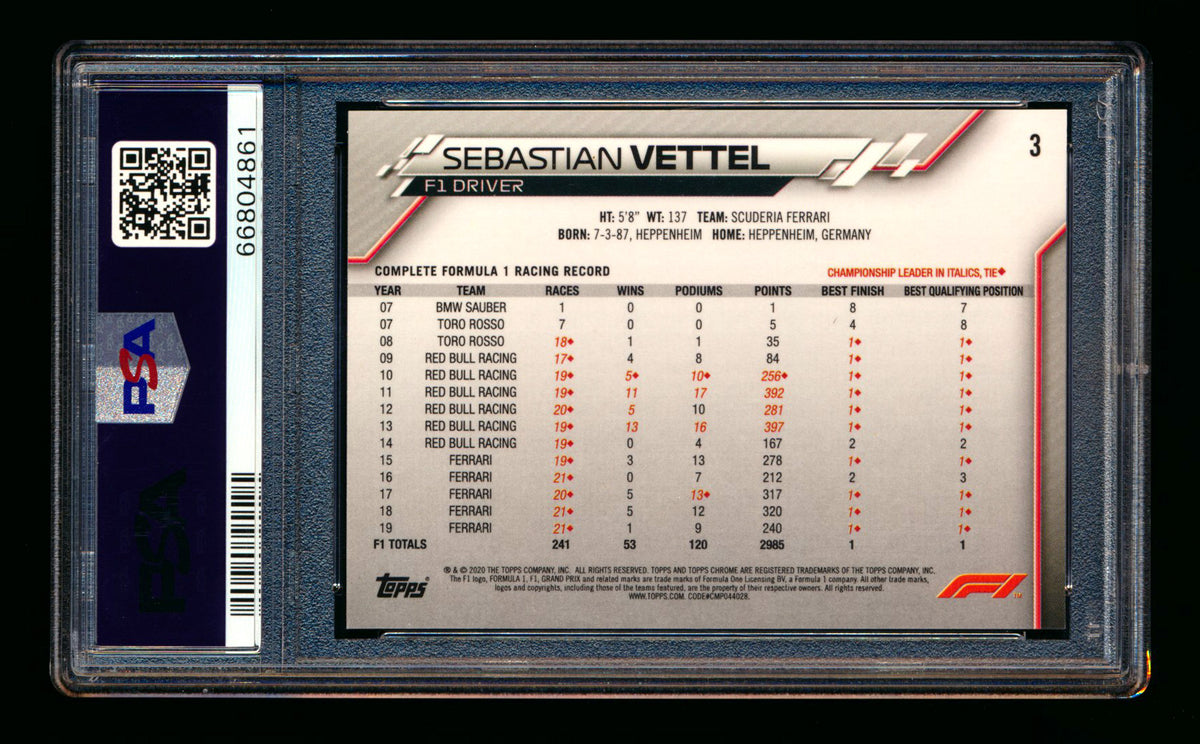 2020 Topps Chrome F1 #3 Sebastian Vettel RC Portrait PSA 10 ** (SOLD eBay - $79.00 - 2/20/2026) **