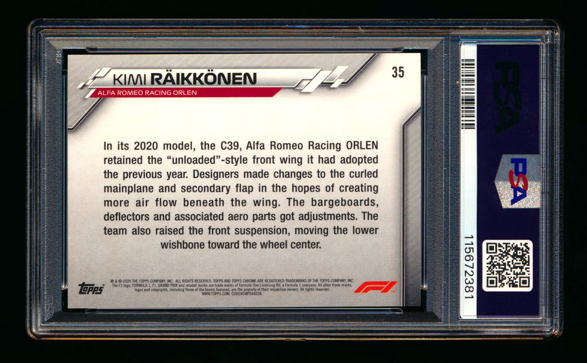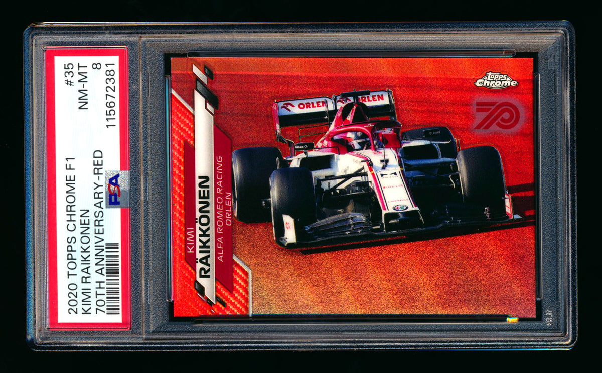 2020 Topps Chrome F1 #35 Kimi Raikkonen RC 70th Anniversary Red Refractor PSA 8
