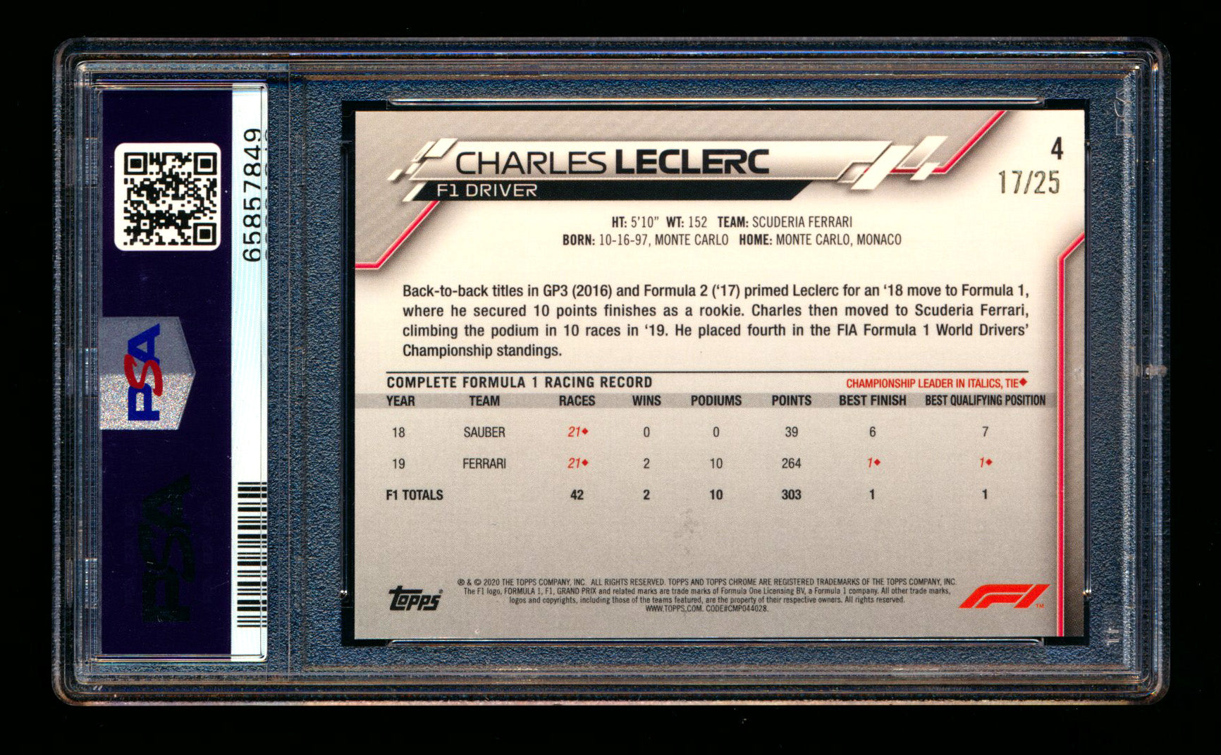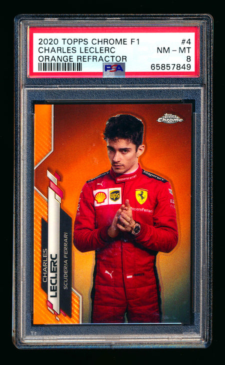 2020 Topps Chrome F1 #4 Charles Leclerc RC Orange Refractor Portrait #17/25 PSA 8 ** (SOLD - $2,900.00 - 9/28/2025) **