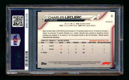 2020 Topps Chrome F1 #4 Charles Leclerc RC Refractor Portrait PSA 10 ** (SOLD eBay - $300.00 - 9/14/2025) **