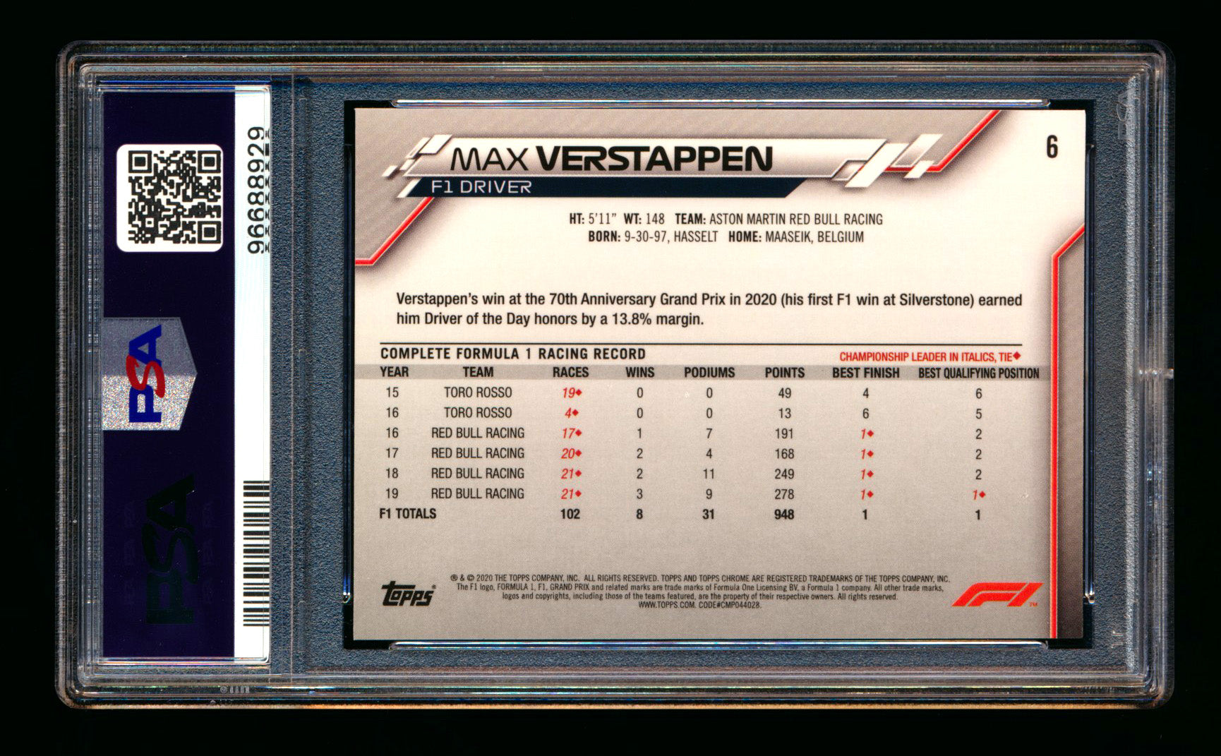 2020 Topps Chrome F1 #6 Max Verstappen RC Portrait PSA 9 ** (SOLD eBay - $75.00 - 10/9/2025) **