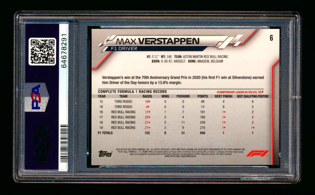 2020 Topps Chrome F1 #6 Max Verstappen RC Portrait PSA 10 ** (SOLD eBay - $349.00 - 2/20/2026) **