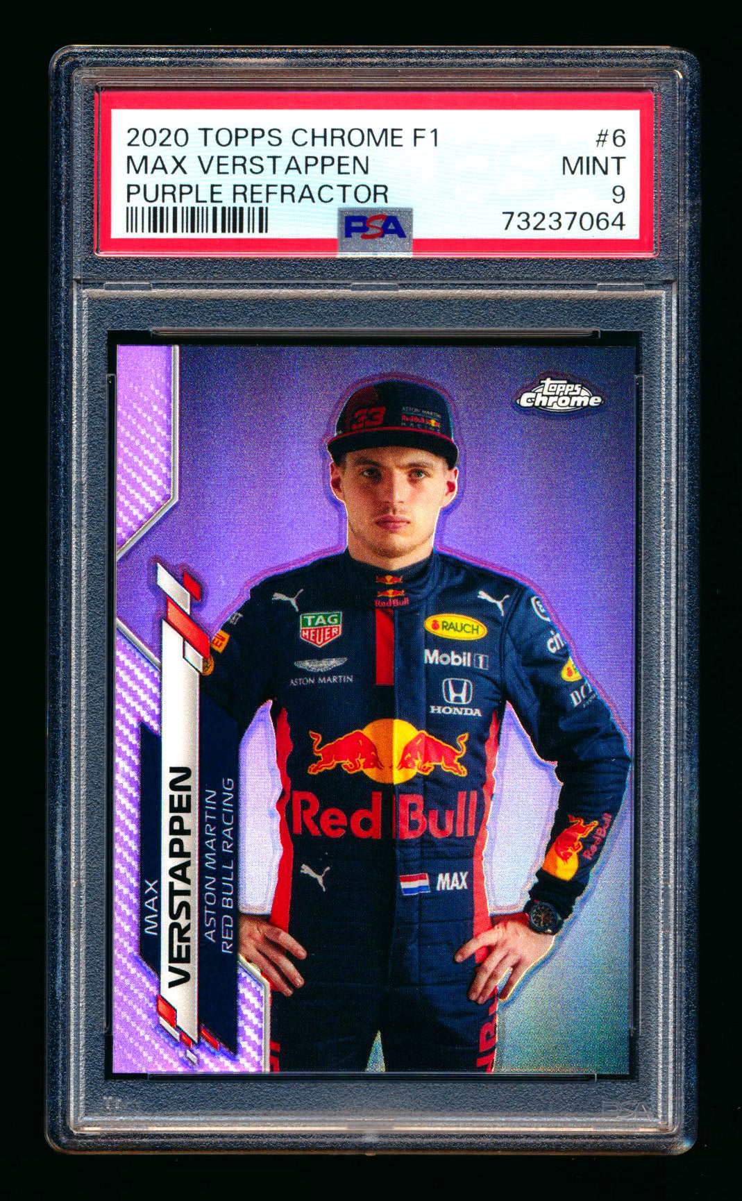 2020 Topps Chrome F1 #6 Max Verstappen RC Purple Refractor Portrait #268/399 PSA 9 ** (SOLD eBay - $425.00 - 10/10/2025) **