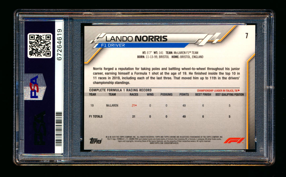 2020 Topps Chrome F1 #7 Lando Norris RC Portrait PSA 10