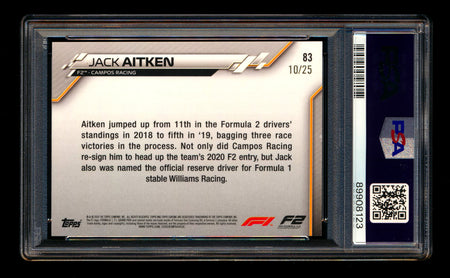 2020 Topps Chrome F1 #83 Jack Aitken RC Orange Refractor #10/25 PSA 8 ** (SOLD eBay - $55.00 - 9/26/2025) **