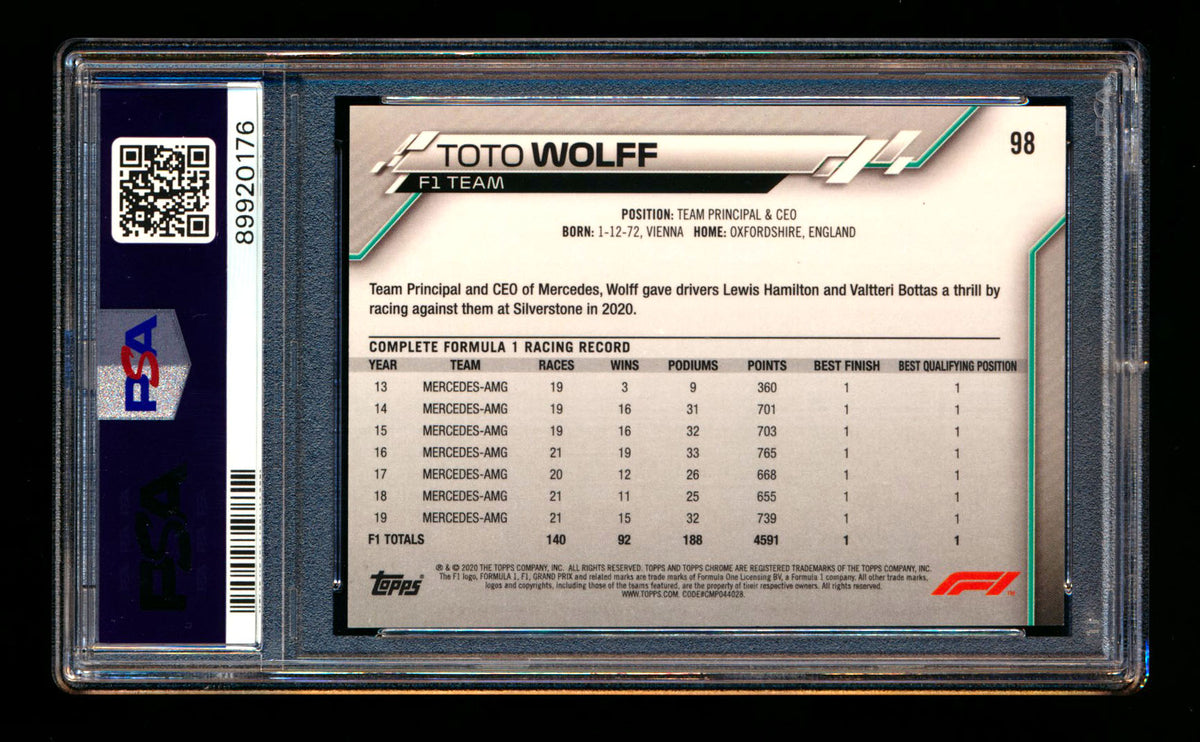 2020 Topps Chrome F1 #98 Toto Wolff RC 70th Anniversary Red Refractor PSA 9 ** (SOLD Nationals - $350.00 - 8/3/2025) **