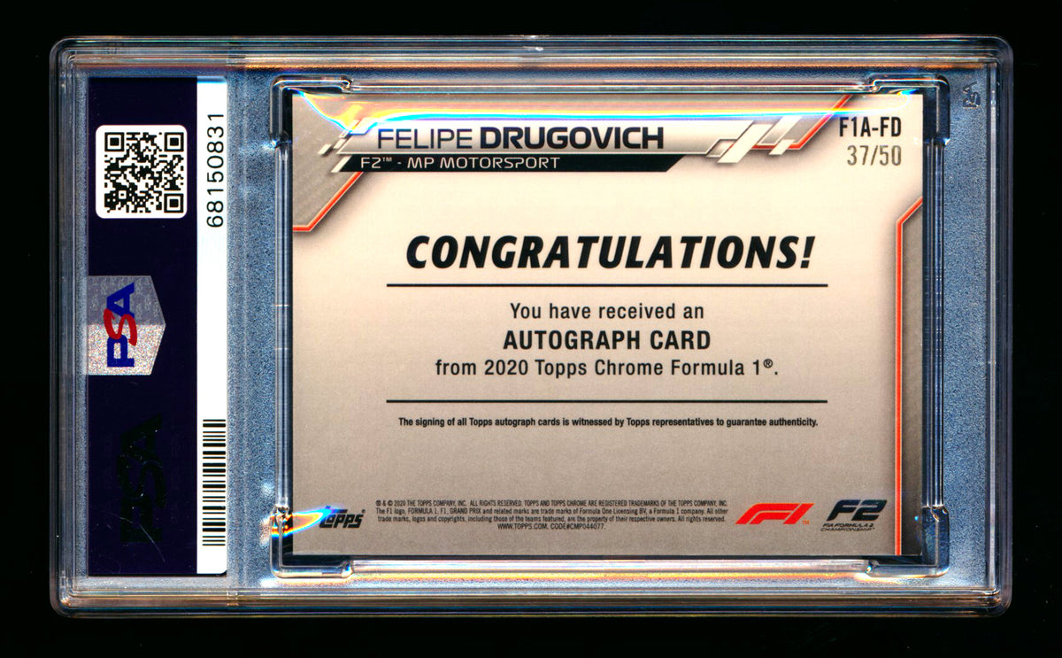 2020 Topps Chrome F1 #F1A-FD Felipe Drugovich RC Gold Refractor Autograph #37/50 PSA 8 ** (SOLD eBay - $85.00 - 5/31/2025) **