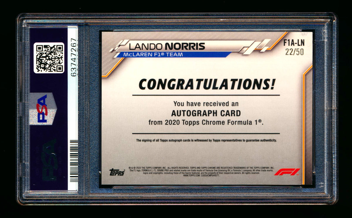 2020 Topps Chrome F1 #F1A-LN Lando Norris RC Gold Refractor Autograph #22/50 PSA 8 ** (SOLD Nationals - $2500.00 - 8/1/2025) **