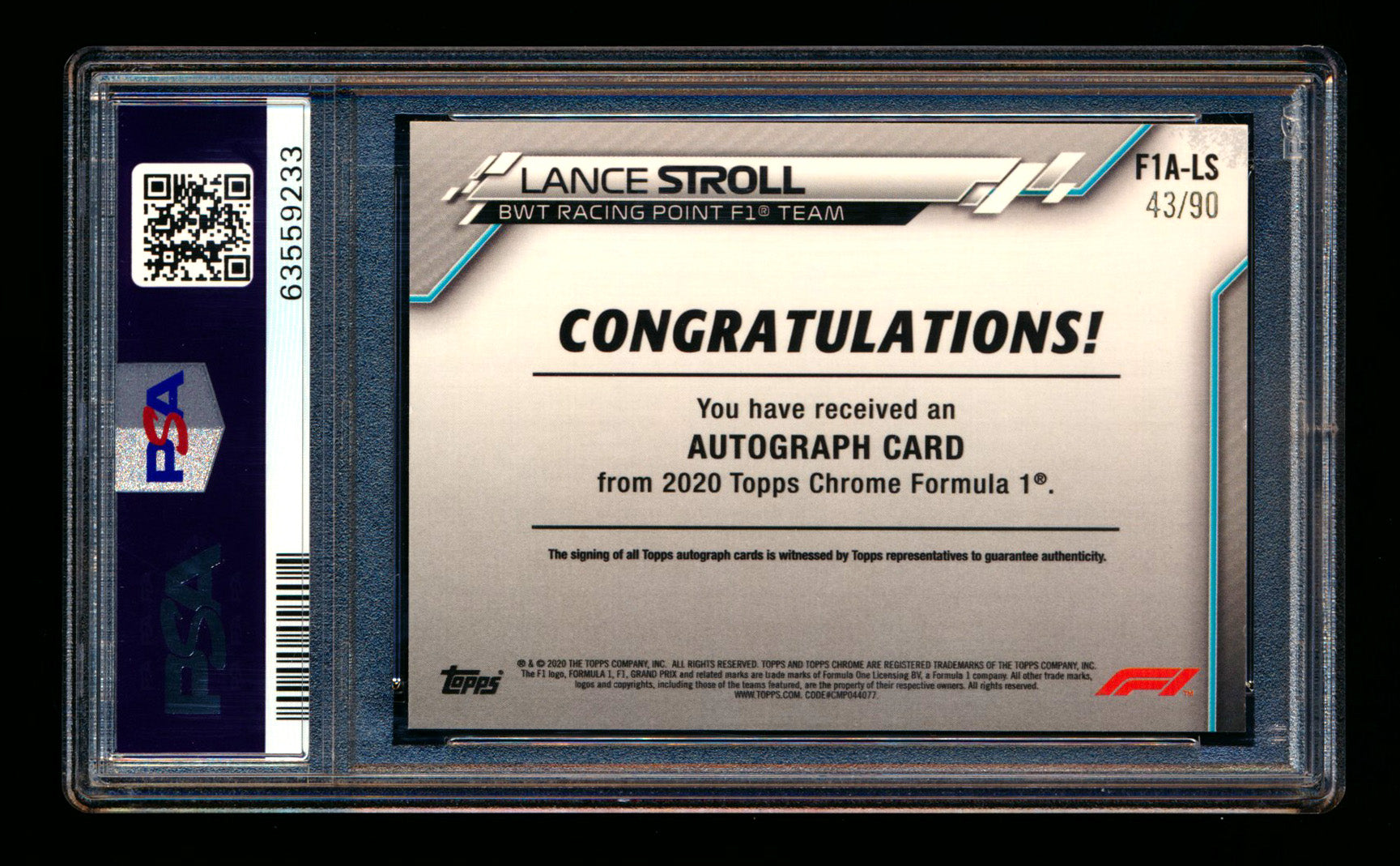 2020 Topps Chrome F1 #F1A-LS Lance Stroll RC Refractor Autograph #43/90 PSA 8