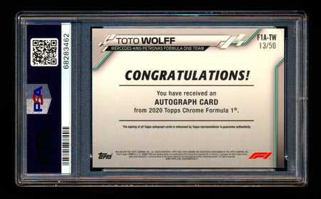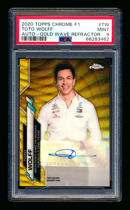 2020 Topps Chrome F1 #F1A-TW Toto Wolff RC Gold Wave Refractor Autograph #13/50 PSA 9 ** (SOLD eBay - $375.00 - 9/30/2025) **