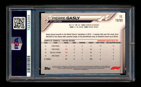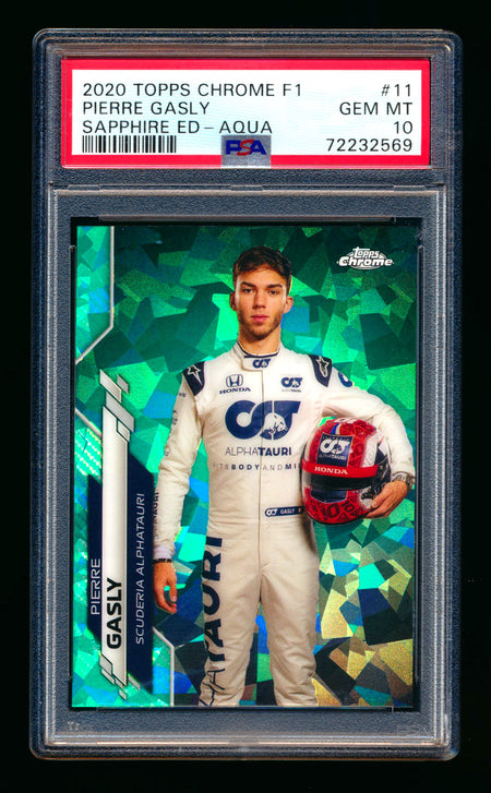 2020 Topps Chrome Sapphire F1 #11 Pierre Gasly RC Aqua Refractor Portrait #70/99 PSA 10