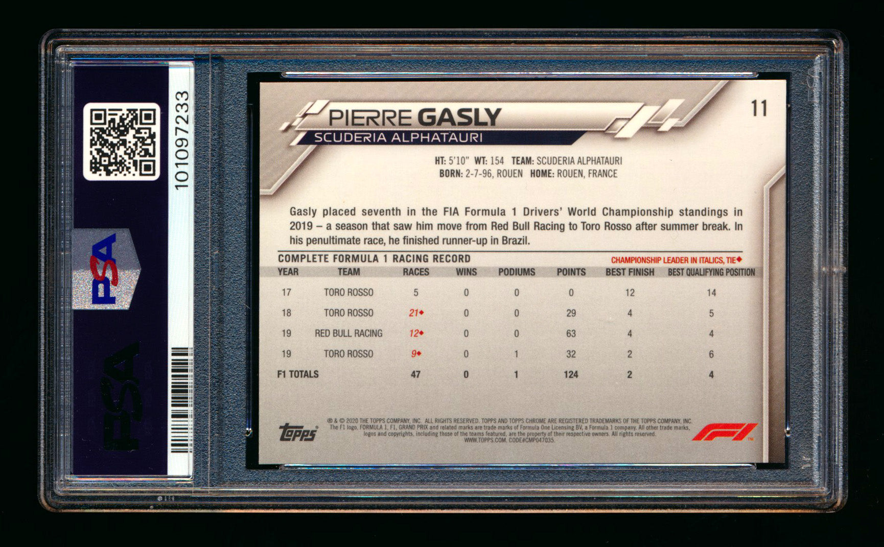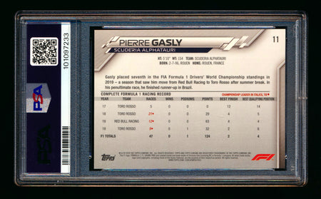 2020 Topps Chrome Sapphire F1 #11 Pierre Gasly RC Refractor Image Variation SP PSA 6 ** (SOLD eBay - $30.00 - 6/11/2025) **