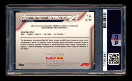 2020 Topps Chrome Sapphire F1 #114 Aston Martin Red Bull Team Logo RC Aqua Refractor #15/99 PSA 9 ** (SOLD - $240.00 - 9/29/2025) **