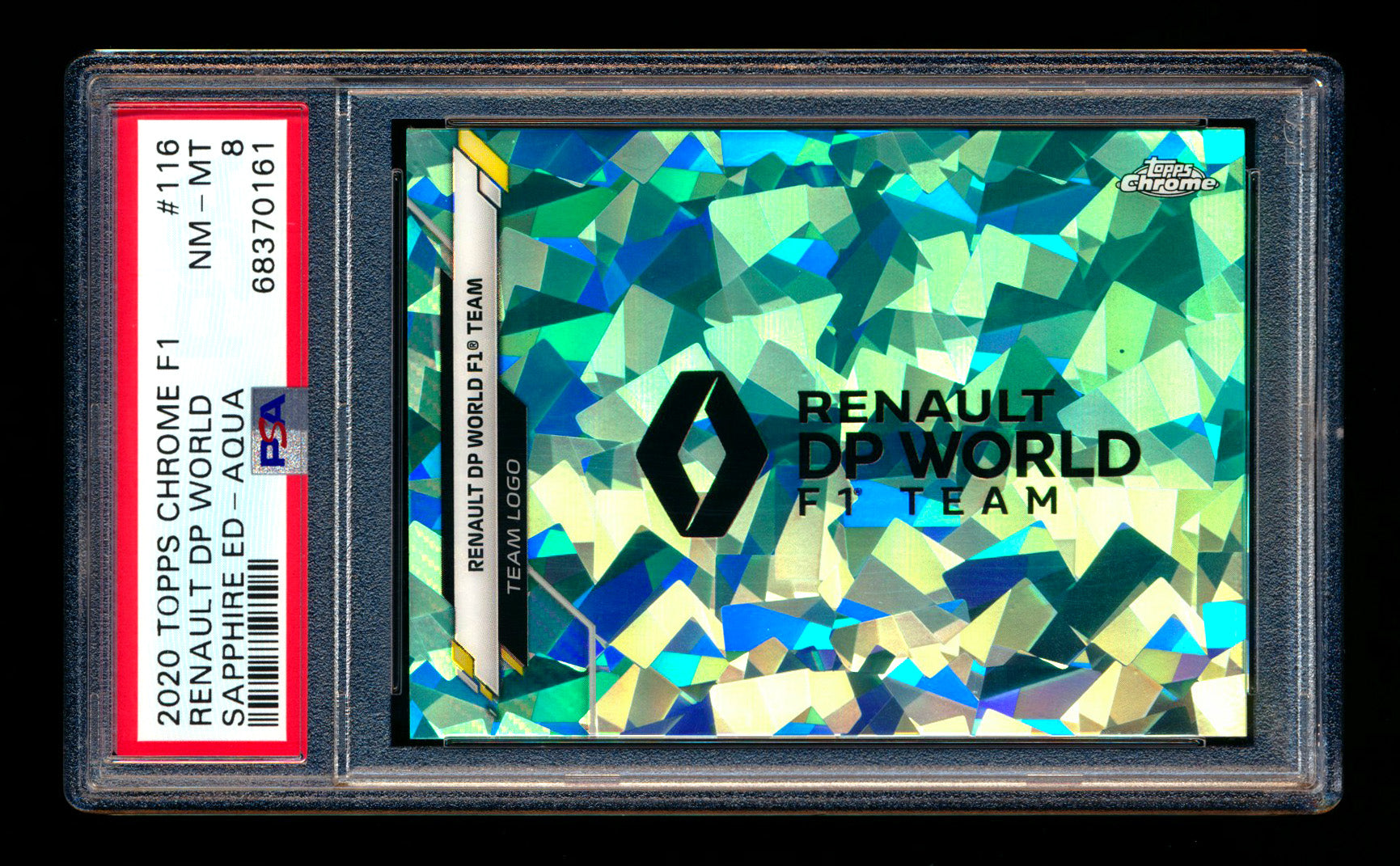 2020 Topps Chrome Sapphire F1 #116 Renault DP World Team Logo RC Aqua Refractor #91/99 PSA 8 ** (SOLD eBay - $40.00 - 4/26/2025) **