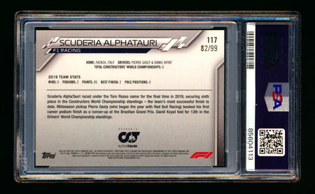 2020 Topps Chrome Sapphire F1 #117 Scuderia AlphaTauri Team Logo RC Aqua Refractor #82/99 PSA 8 ** (SOLD eBay - $59.00 - 9/19/2025) **