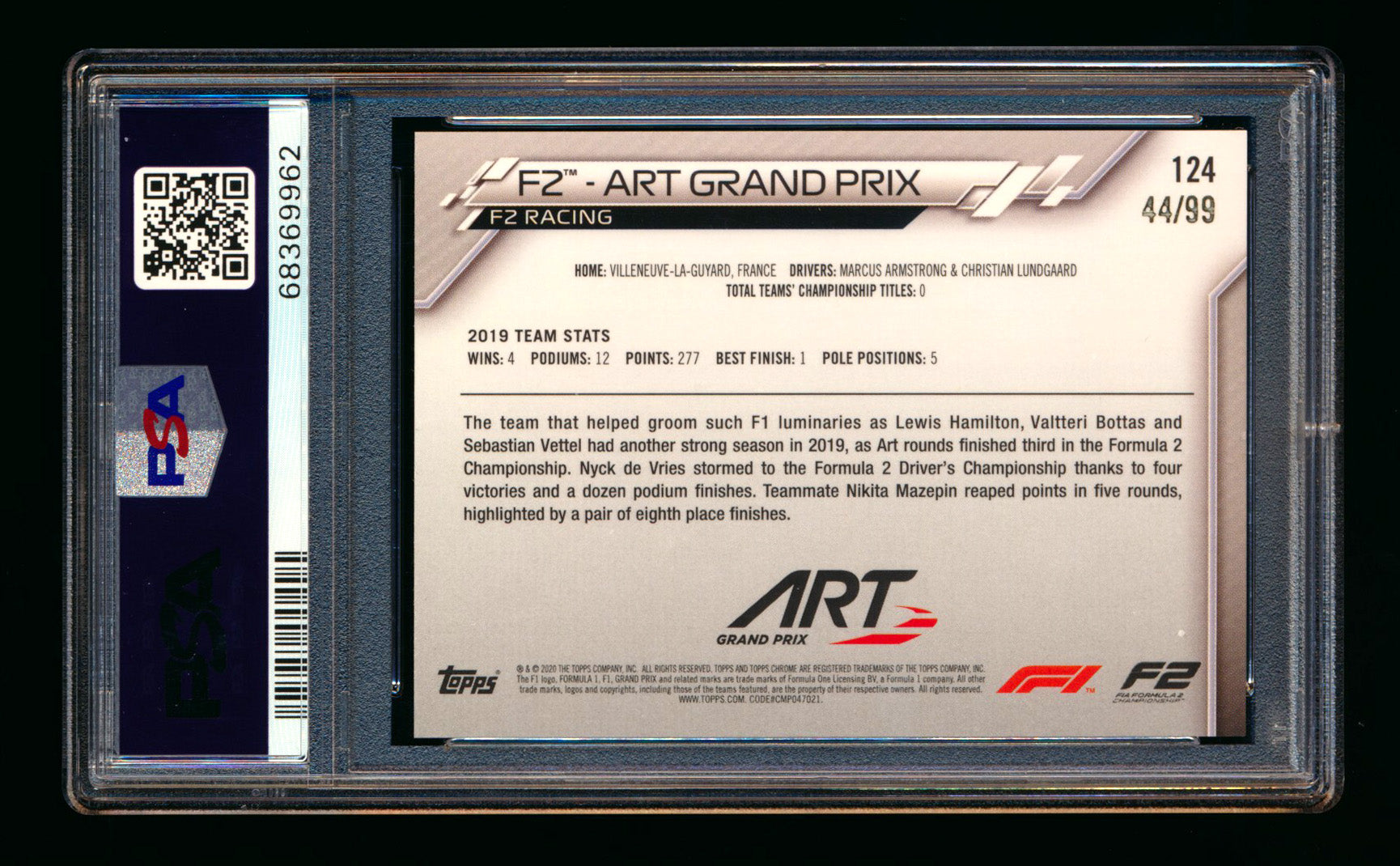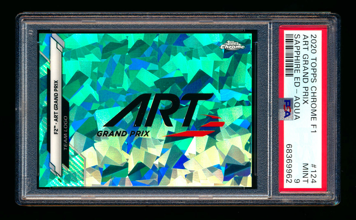 2020 Topps Chrome Sapphire F1 #124 Art Grand Prix Team Logo RC Aqua Refractor #44/99 PSA 9