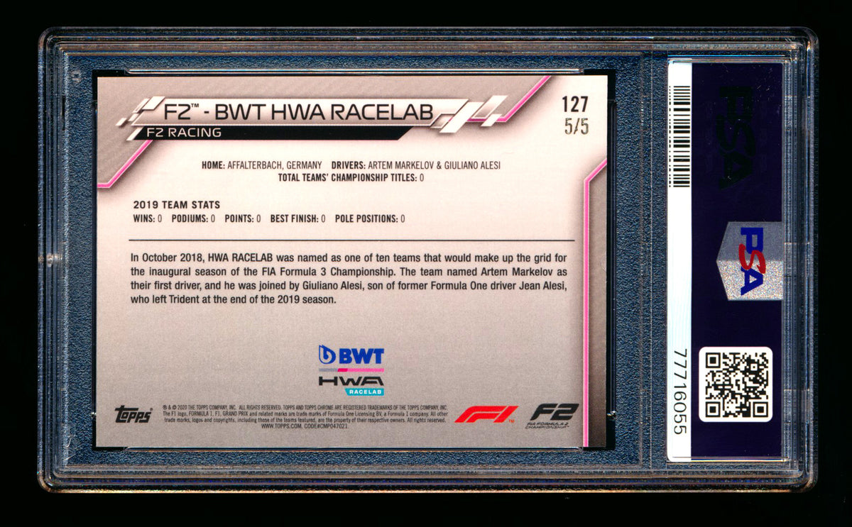 2020 Topps Chrome Sapphire F1 #127 BWT HWA Racelab Team Logo RC Red Refractor #5/5 PSA 8 (Last #!)