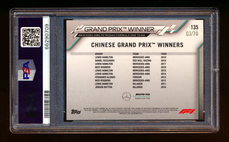 2020 Topps Chrome Sapphire F1 #135 Lewis Hamilton RC 70th Silver Refractor #03/70 PSA 9
