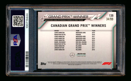 2020 Topps Chrome Sapphire F1 #139 Lewis Hamilton RC Aqua Refractor #34/99 PSA 9 ** (SOLD Nationals - $75.00 - 8/1/2025) **