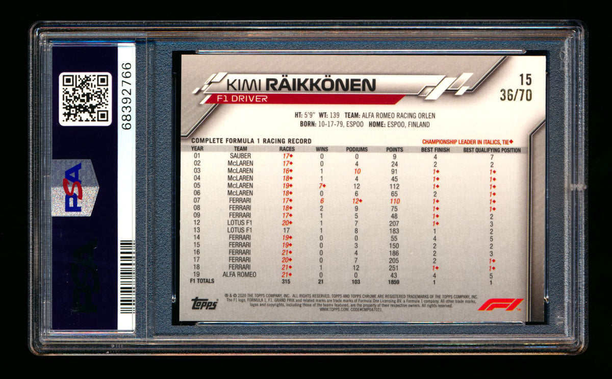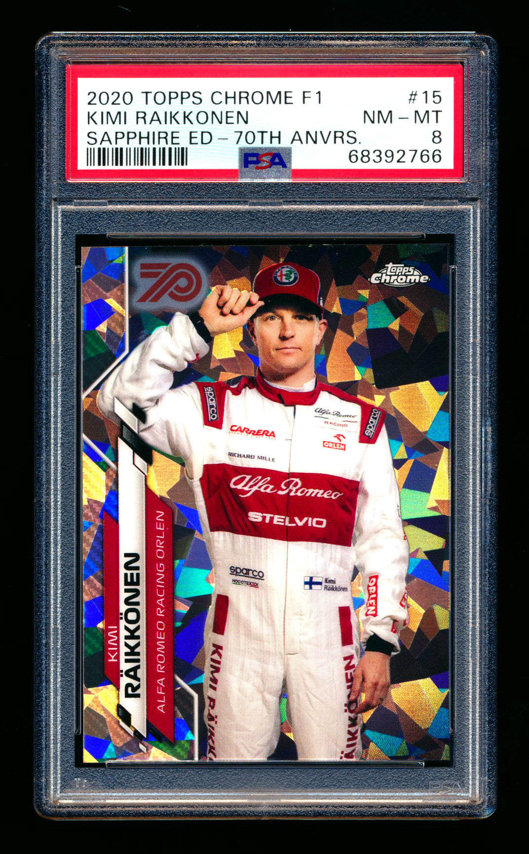 2020 Topps Chrome Sapphire F1 #15 Kimi Raikkonen RC 70th Silver Refractor Portrait #36/70 PSA 8