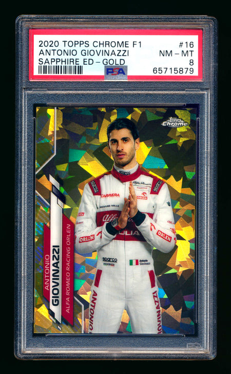 2020 Topps Chrome Sapphire F1 #16 Antonio Giovinazzi RC Gold Refractor Portrait #10/50 PSA 8