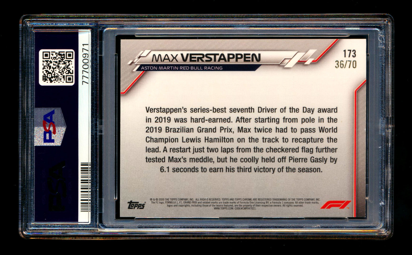 2020 Topps Chrome Sapphire F1 #173 Max Verstappen RC 70th Silver Refractor #36/70 PSA 8 ** (SOLD Fanatics Fest - $85.00 - 6/21/2025) **