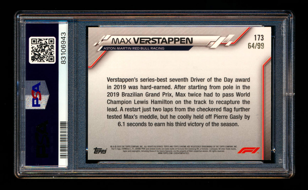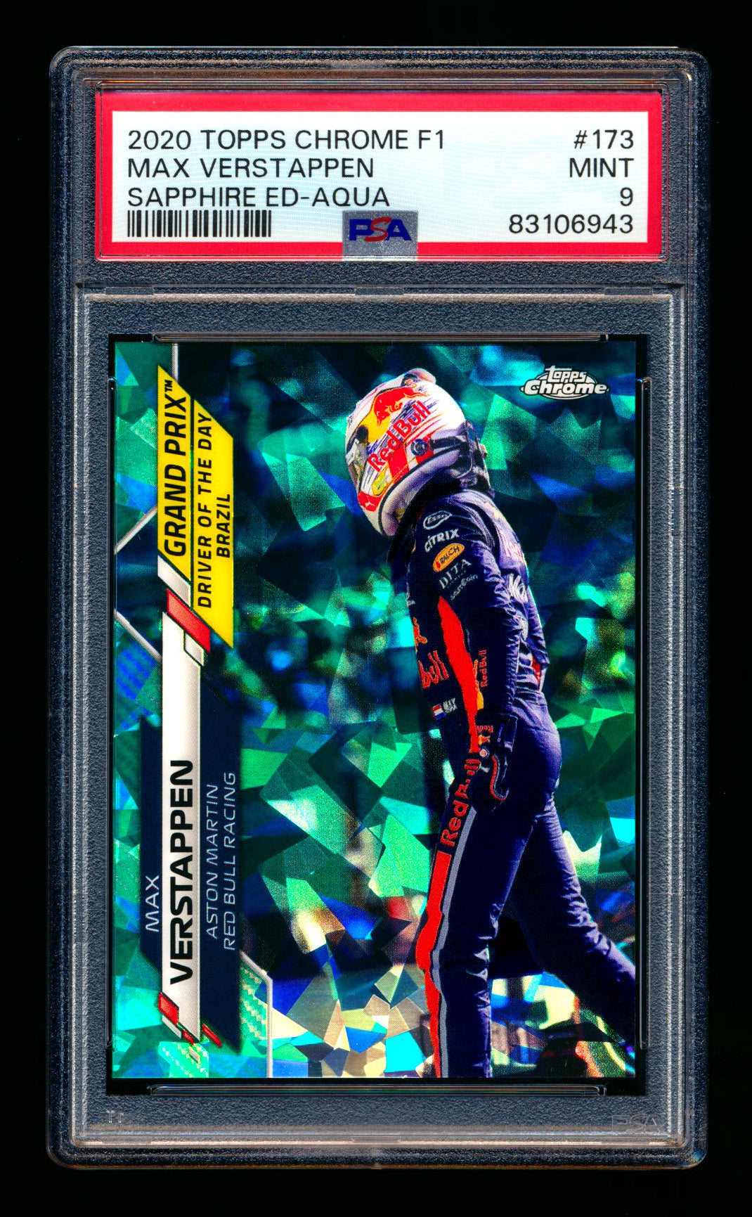 2020 Topps Chrome Sapphire F1 #173 Max Verstappen RC Aqua Refractor #64/99 PSA 9 ** (SOLD eBay - $109.00 - 6/10/2025) **