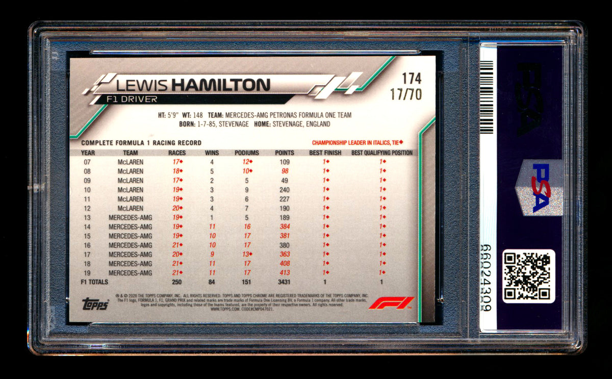 2020 Topps Chrome Sapphire F1 #174 Lewis Hamilton RC 70th Silver Refractor #17/70 PSA 8