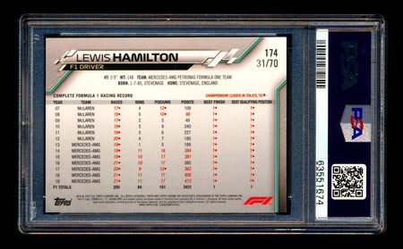 2020 Topps Chrome Sapphire F1 #174 Lewis Hamilton RC 70th Silver Refractor #31/70 PSA 9