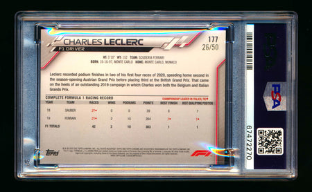 2020 Topps Chrome Sapphire F1 #177 Charles Leclerc RC Gold Refractor #26/50 PSA 8