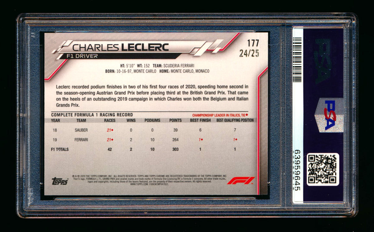 2020 Topps Chrome Sapphire F1 #177 Charles Leclerc RC Orange Refractor #24/25 PSA 8 ** (SOLD eBay - $179.00 - 2/28/2025) **