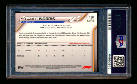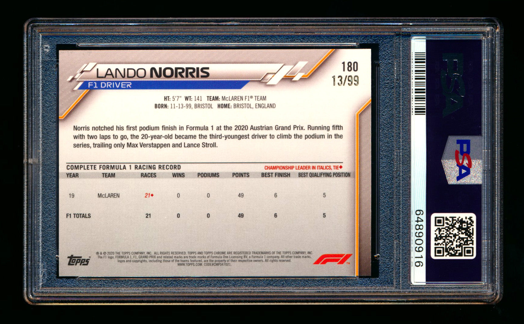 2020 Topps Chrome Sapphire F1 #180 Lando Norris RC Aqua Refractor #13/99 PSA 9 ** (SOLD - $85.00 - 3/7/2025) **