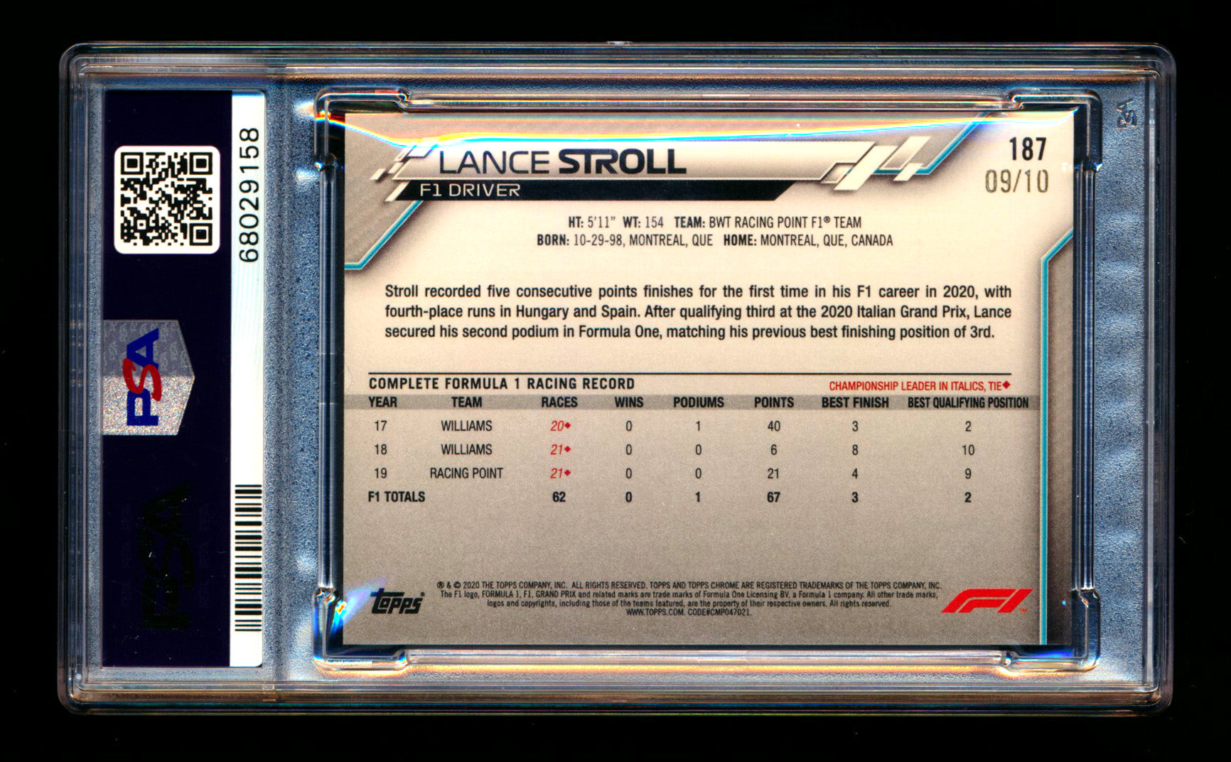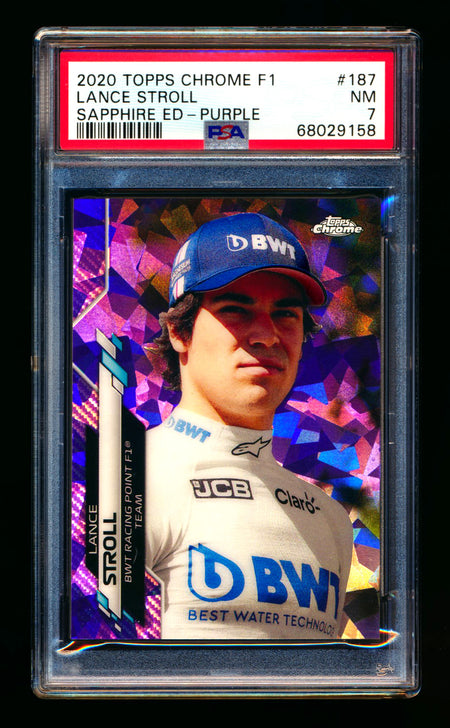 2020 Topps Chrome Sapphire F1 #187 Lance Stroll RC Purple Refractor #09/10 PSA 7